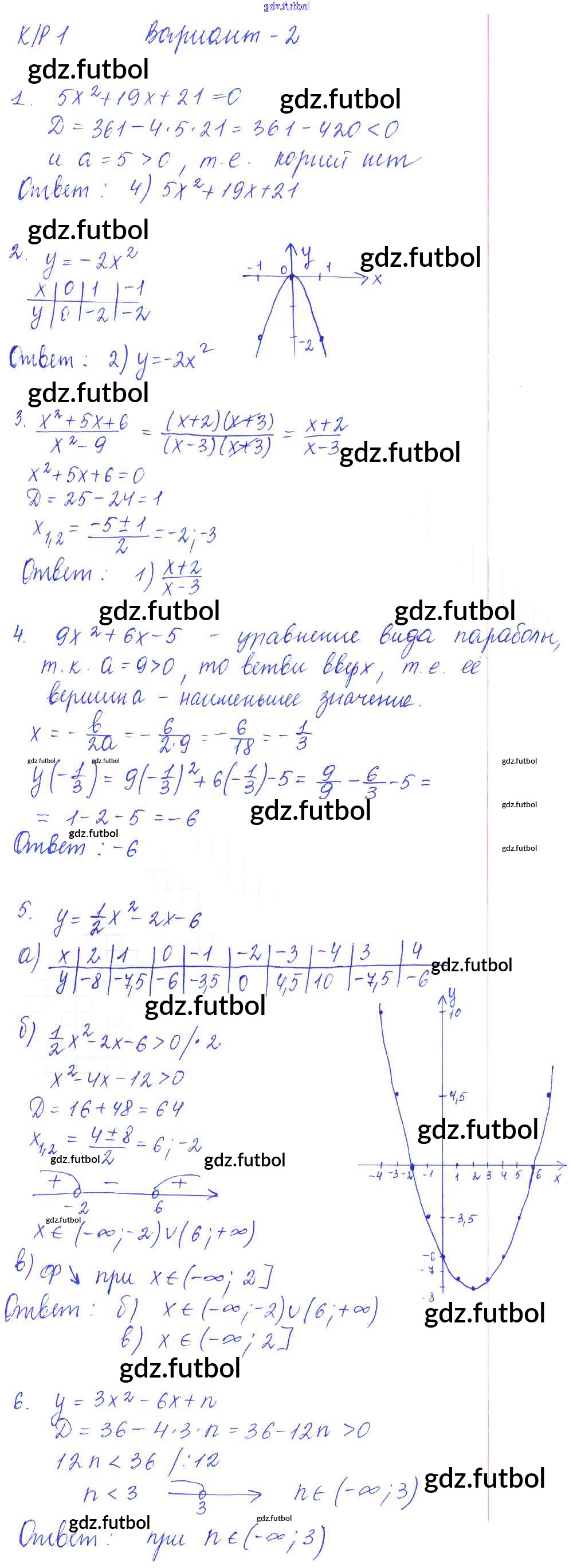 Готовые домашние задания по Алгебре за 9 класс Глазков Самостоятельные и контрольные работы УМК 2013 ФГОС - КР-1. Функции и их свойства. Квадратный трехчлен. Квадратичная функция и её график вариант 2