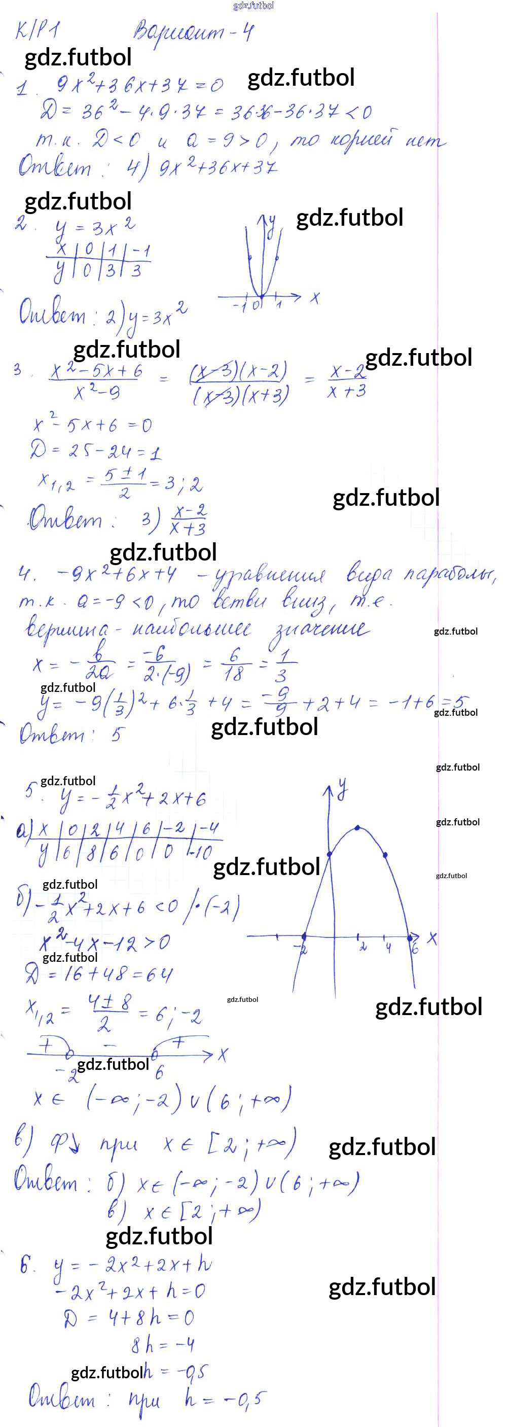 Готовые домашние задания по Алгебре за 9 класс Глазков Самостоятельные и контрольные работы УМК 2013 ФГОС - КР-1. Функции и их свойства. Квадратный трехчлен. Квадратичная функция и её график вариант 4