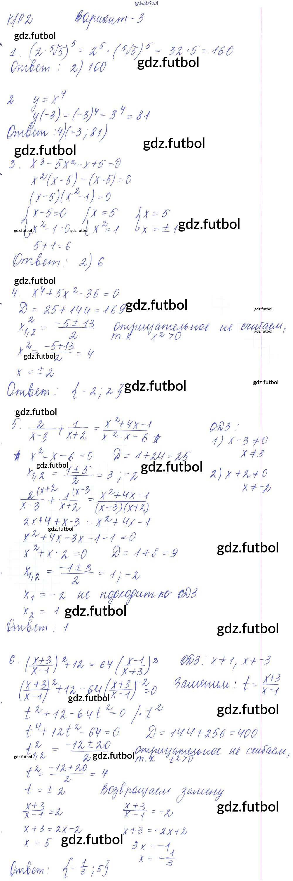 Готовые домашние задания по Алгебре за 9 класс Глазков Самостоятельные и контрольные работы УМК 2013 ФГОС - КР-2. Степенная функция. Корень n-й степени. Уравнения с одной переменной вариант 3