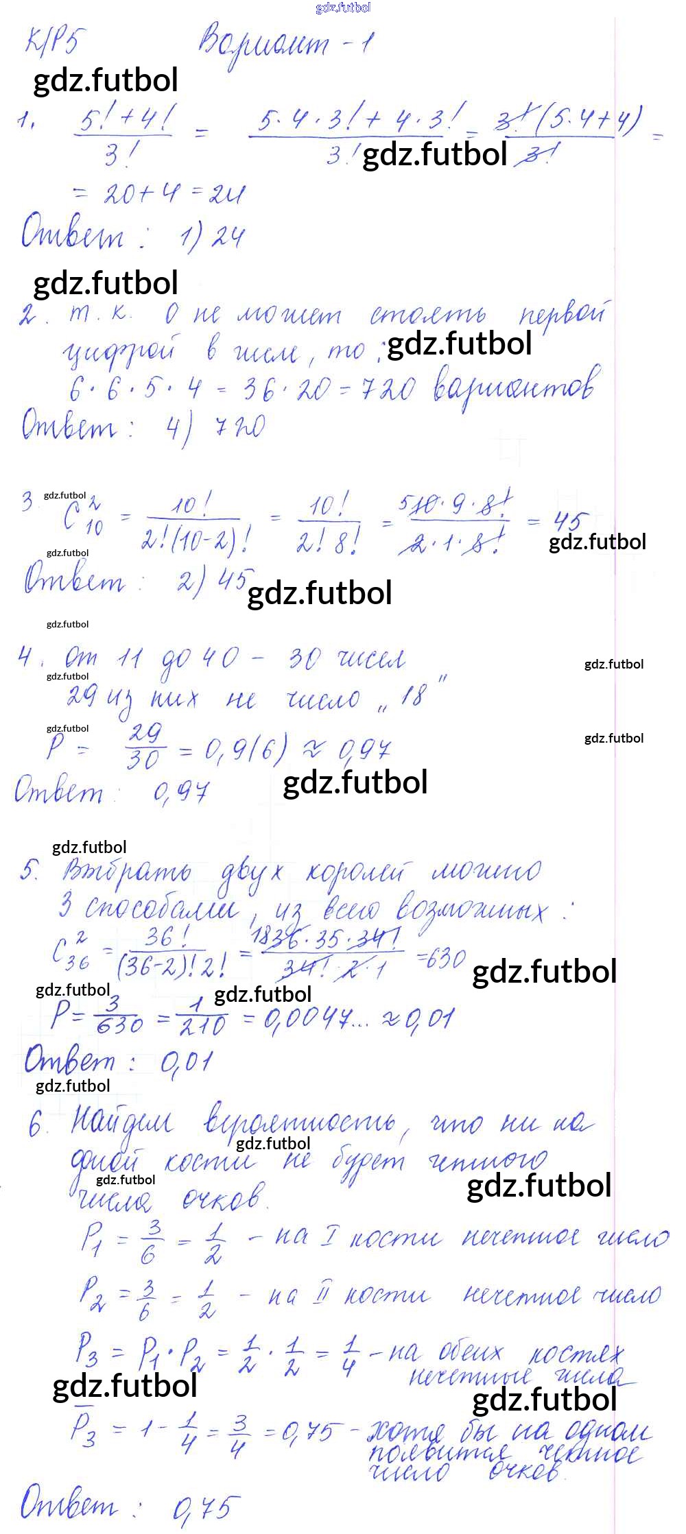 Готовые домашние задания по Алгебре за 9 класс Глазков Самостоятельные и контрольные работы УМК 2013 ФГОС - КР-5. Элементы комбинаторики и теории вероятностей вариант 1