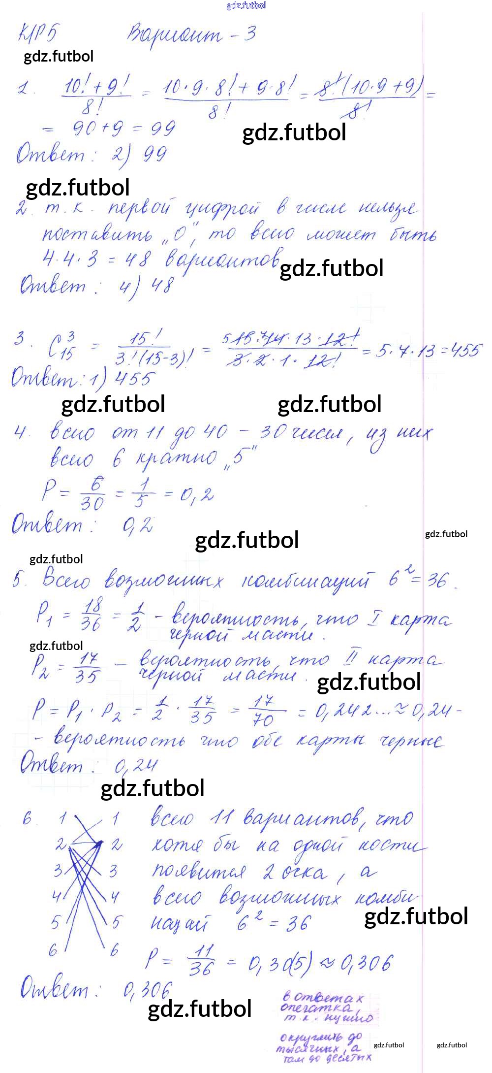 Готовые домашние задания по Алгебре за 9 класс Глазков Самостоятельные и контрольные работы УМК 2013 ФГОС - КР-5. Элементы комбинаторики и теории вероятностей вариант 3