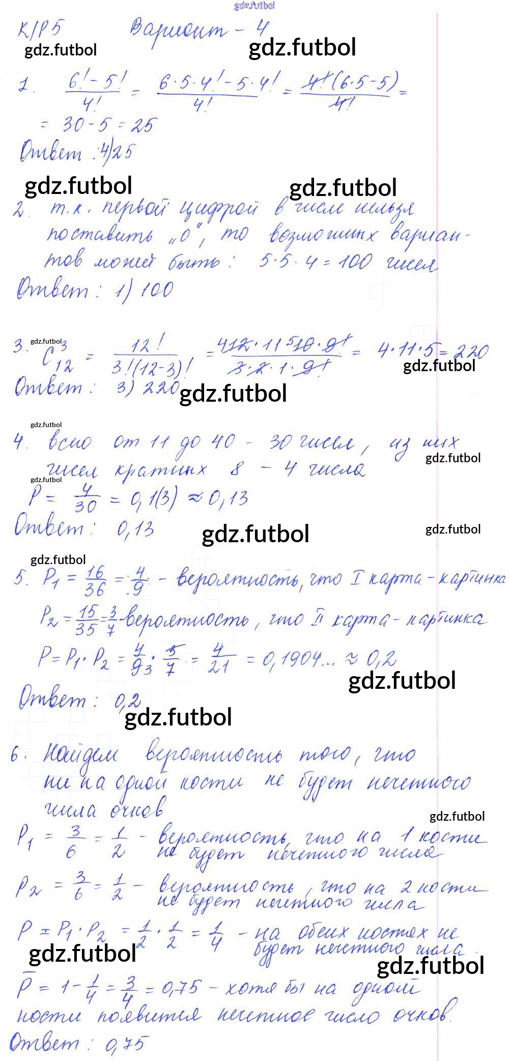 Готовые домашние задания по Алгебре за 9 класс Глазков Самостоятельные и контрольные работы УМК 2013 ФГОС - КР-5. Элементы комбинаторики и теории вероятностей вариант 4