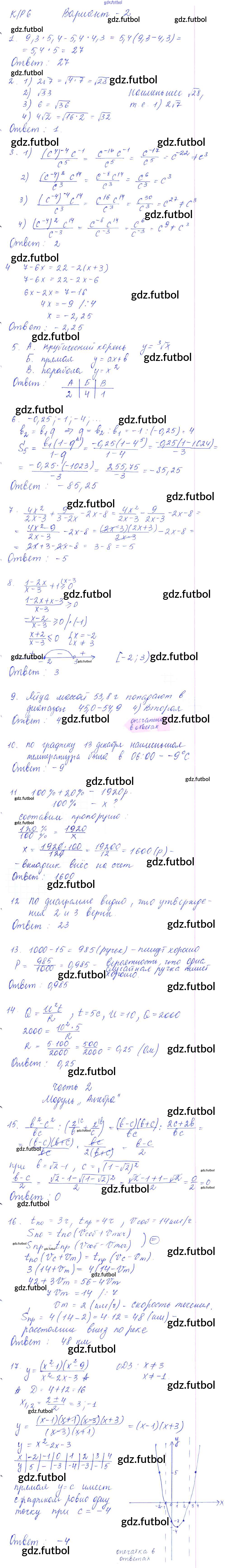 Готовые домашние задания по Алгебре за 9 класс Глазков Самостоятельные и контрольные работы УМК 2013 ФГОС - КР-6. В формате ГИА вариант 2