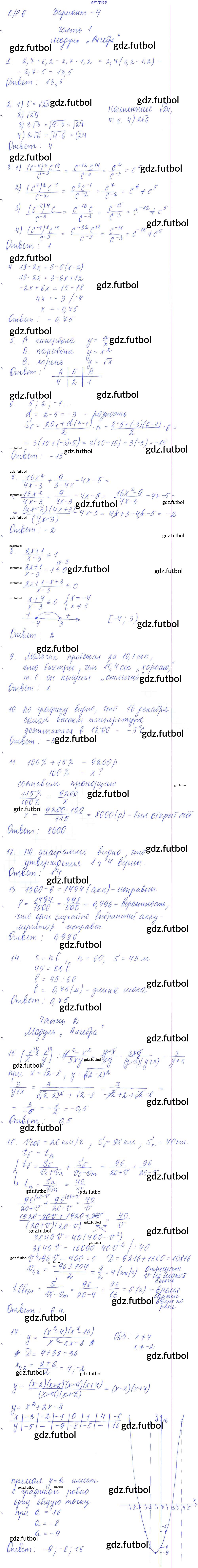 Готовые домашние задания по Алгебре за 9 класс Глазков Самостоятельные и контрольные работы УМК 2013 ФГОС - КР-6. В формате ГИА вариант 4