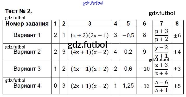 Готовые домашние задания по Алгебре за 9 класс Глазков Контрольно-измерительные материалы (КИМ) 2014 ФГОС - Тесты №2