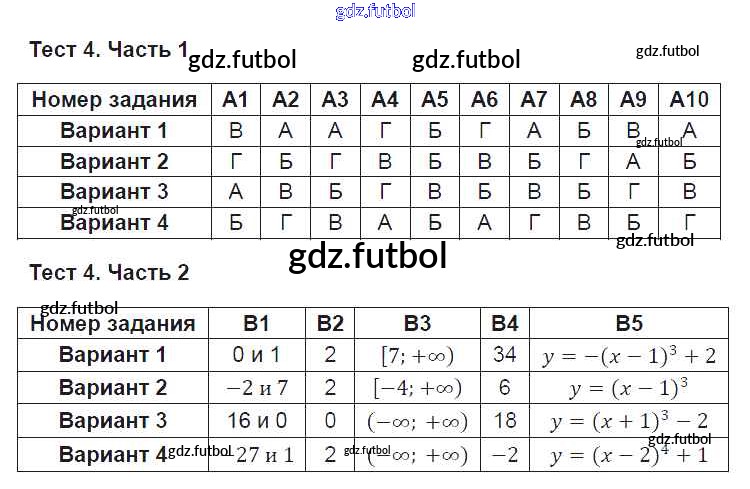 Готовые решения задач (ГДЗ) по Алгебре девятый класс Ключникова, Комиссарова Тесты УМК 2011 ФГОС - Тесты Тест №4 доступны для различных учебных материалов. У нас вы сможете найти авторские решения для всех пособий, предназначенных для школьников. Не секрет, что в настоящее время многие школьники прибегают к использованию готовых решебников, ведь они содержат подробные ответы для каждого упражнения, представленного в учебнике.