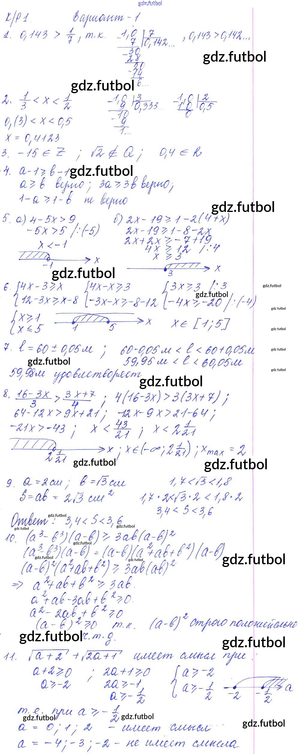 Готовые домашние задания по Алгебре за 9 класс Кузнецова Контрольные работы 2016 ФГОС - КР-1. Неравенства вариант №1