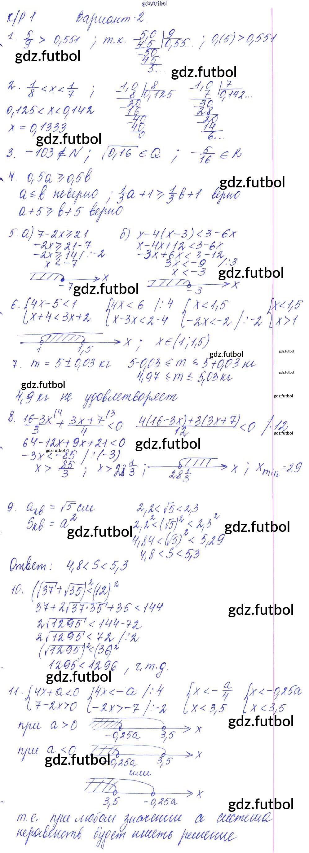 Готовые домашние задания по Алгебре за 9 класс Кузнецова Контрольные работы 2016 ФГОС - КР-1. Неравенства вариант №2