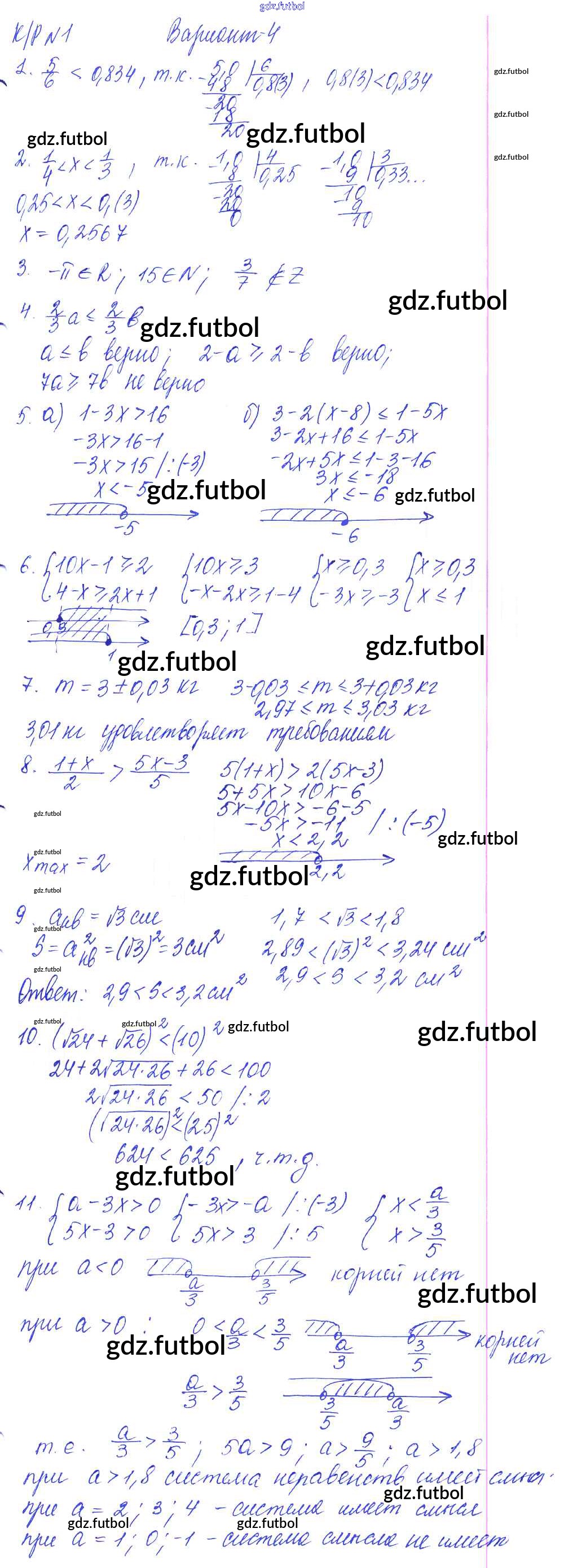 Готовые домашние задания по Алгебре за 9 класс Кузнецова Контрольные работы 2016 ФГОС - КР-1. Неравенства вариант №4