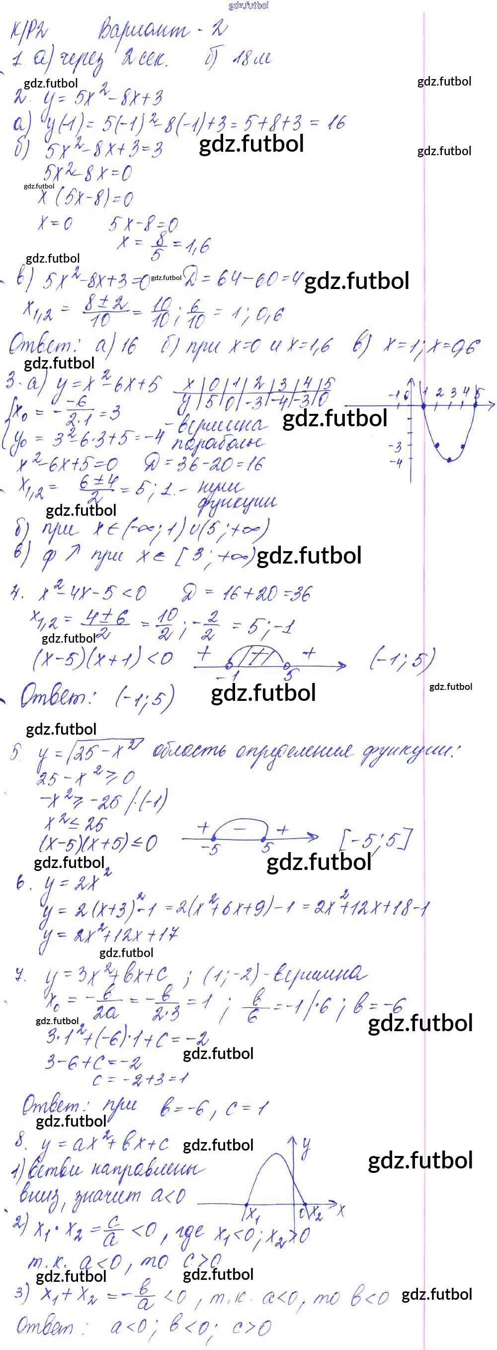Готовые домашние задания по Алгебре за 9 класс Кузнецова Контрольные работы 2016 ФГОС - КР-2. Квадратичная функция вариант №2
