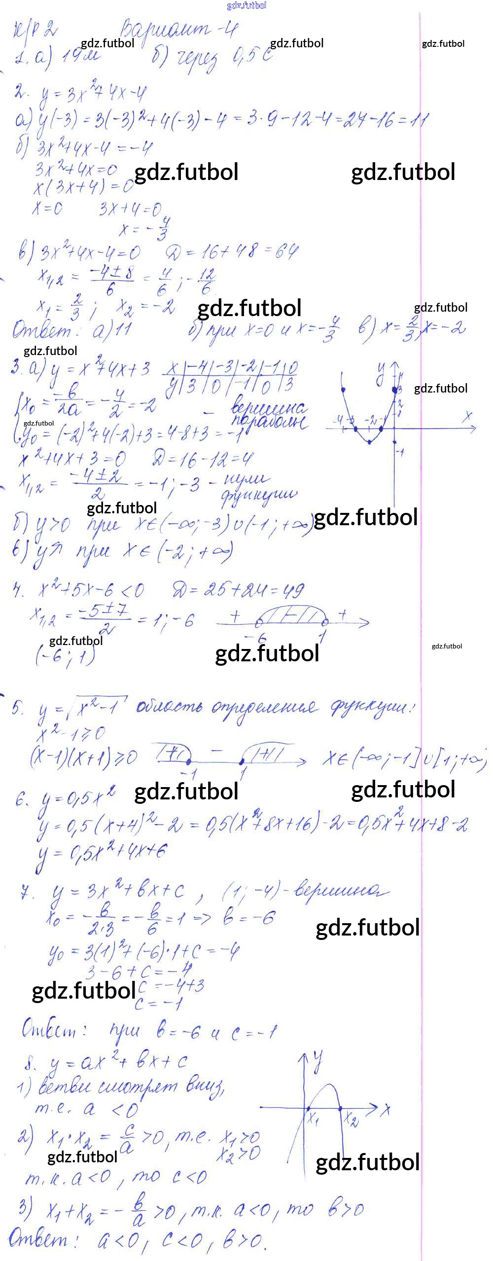 Готовые домашние задания по Алгебре за 9 класс Кузнецова Контрольные работы 2016 ФГОС - КР-2. Квадратичная функция вариант №4