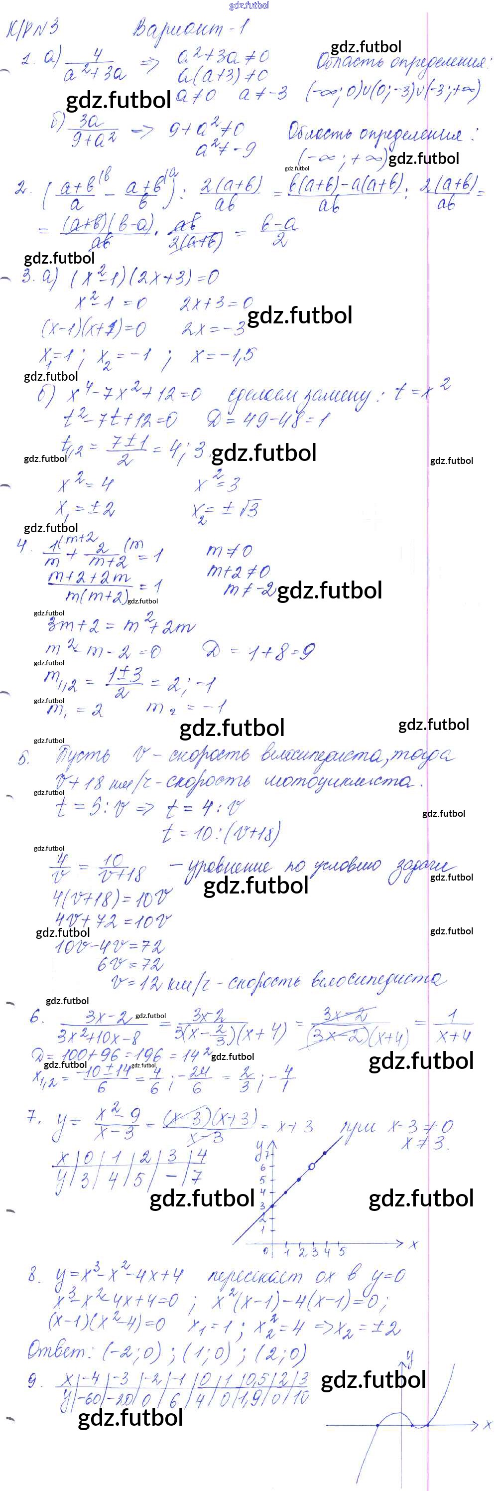 Готовые домашние задания по Алгебре за 9 класс Кузнецова Контрольные работы 2016 ФГОС - КР-3. Рациональные выражения. Уравнения с одной переменной вариант №1