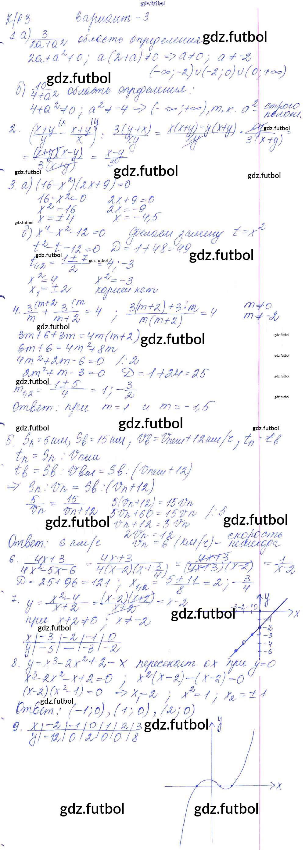 Готовые домашние задания по Алгебре за 9 класс Кузнецова Контрольные работы 2016 ФГОС - КР-3. Рациональные выражения. Уравнения с одной переменной вариант №3