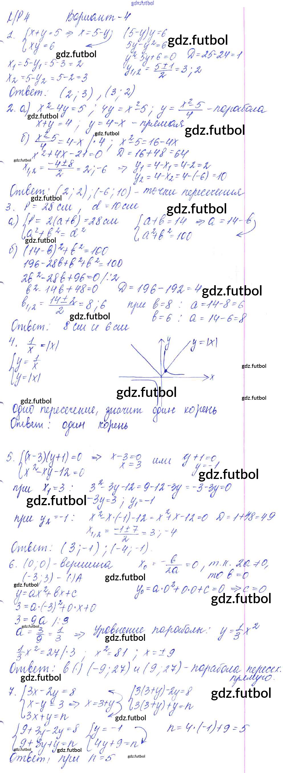 Готовые домашние задания по Алгебре за 9 класс Кузнецова Контрольные работы 2016 ФГОС - КР-4. Системы уравнений вариант №4