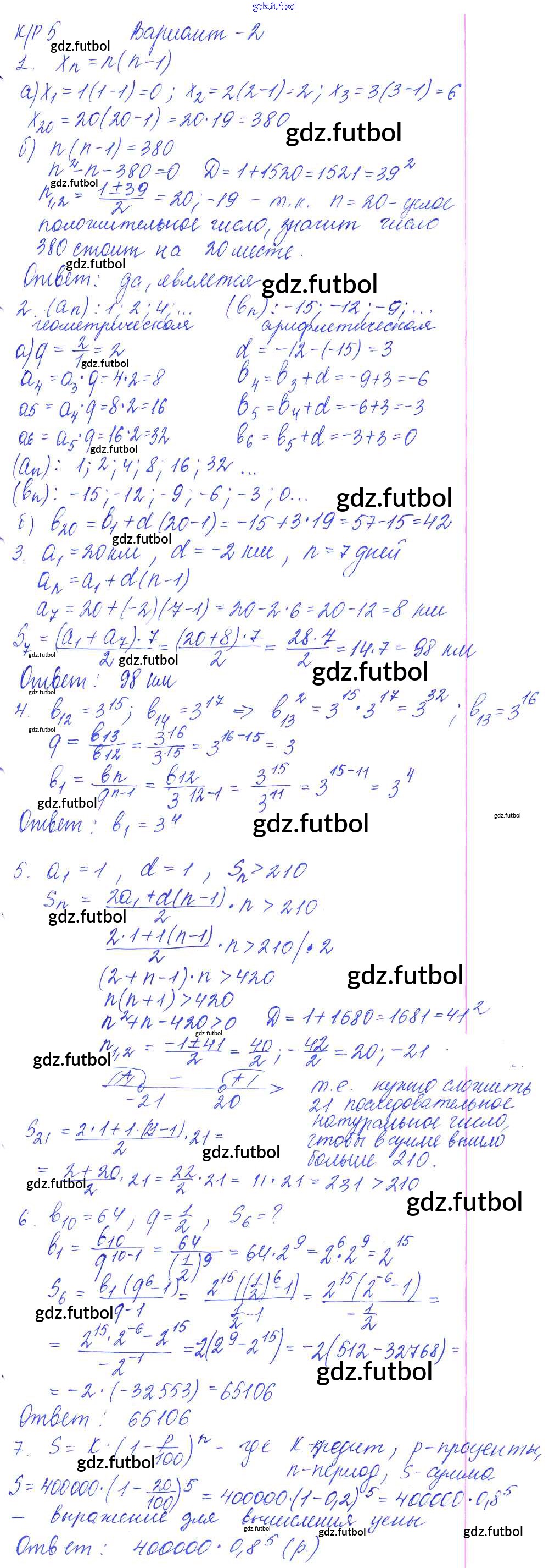Готовые домашние задания по Алгебре за 9 класс Кузнецова Контрольные работы 2016 ФГОС - КР-5. Арифметическая и геометрическая прогрессии вариант №2
