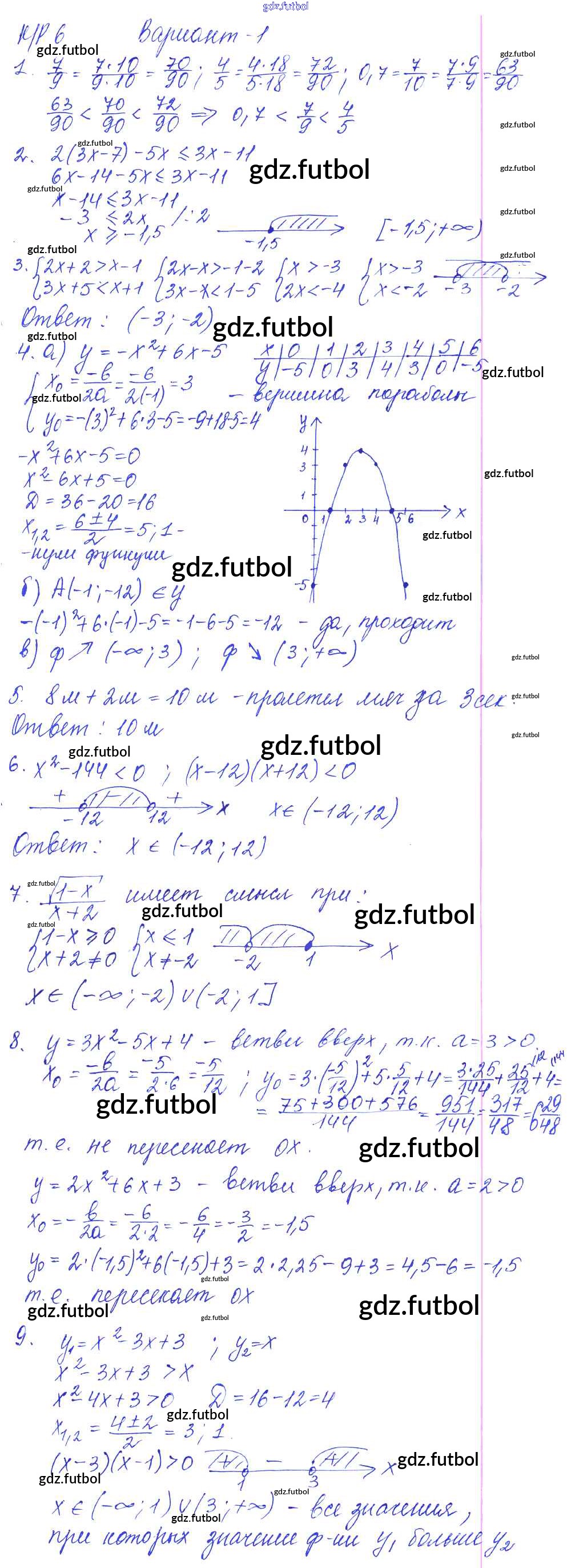 Готовые домашние задания по Алгебре за 9 класс Кузнецова Контрольные работы 2016 ФГОС - КР-6. Итоговая работа за первое полугодие вариант №1