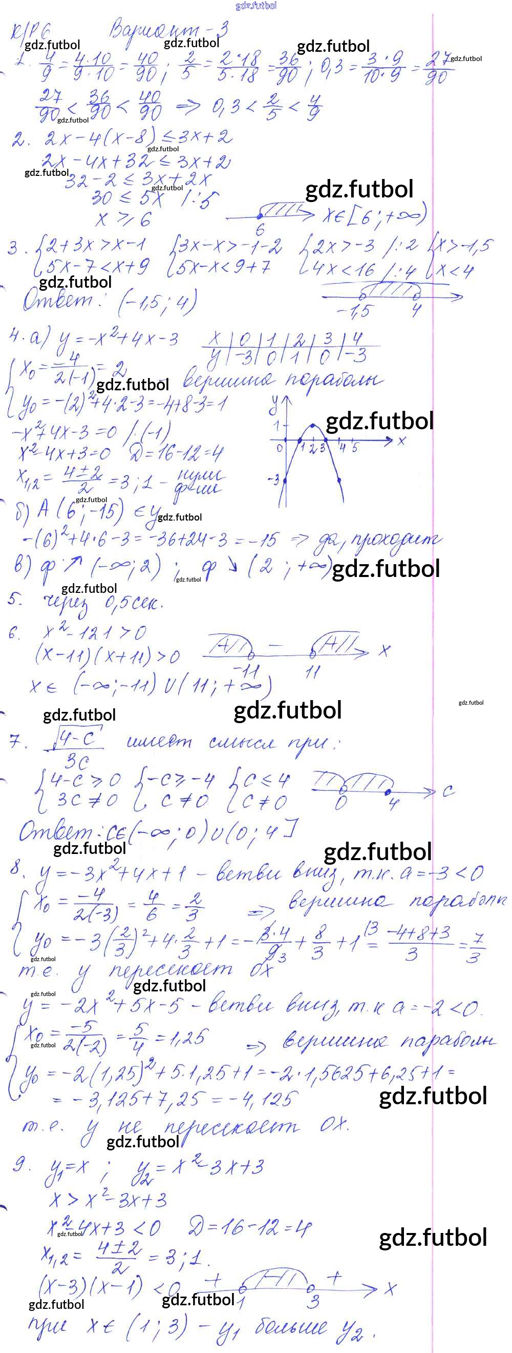 Готовые домашние задания по Алгебре за 9 класс Кузнецова Контрольные работы 2016 ФГОС - КР-6. Итоговая работа за первое полугодие вариант №3