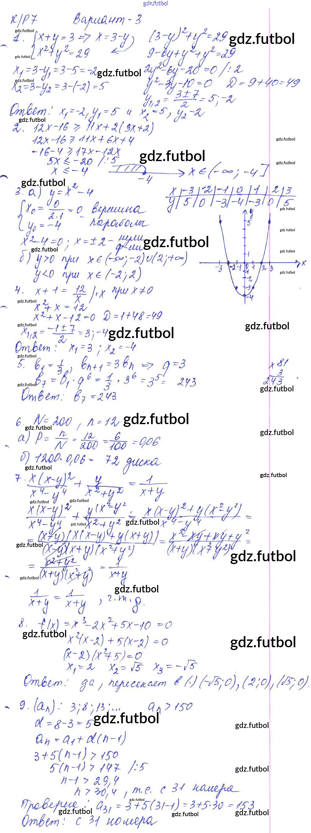 Готовые домашние задания по Алгебре за 9 класс Кузнецова Контрольные работы 2016 ФГОС - КР-7. Итоговая работа за курс 9 класса вариант №3