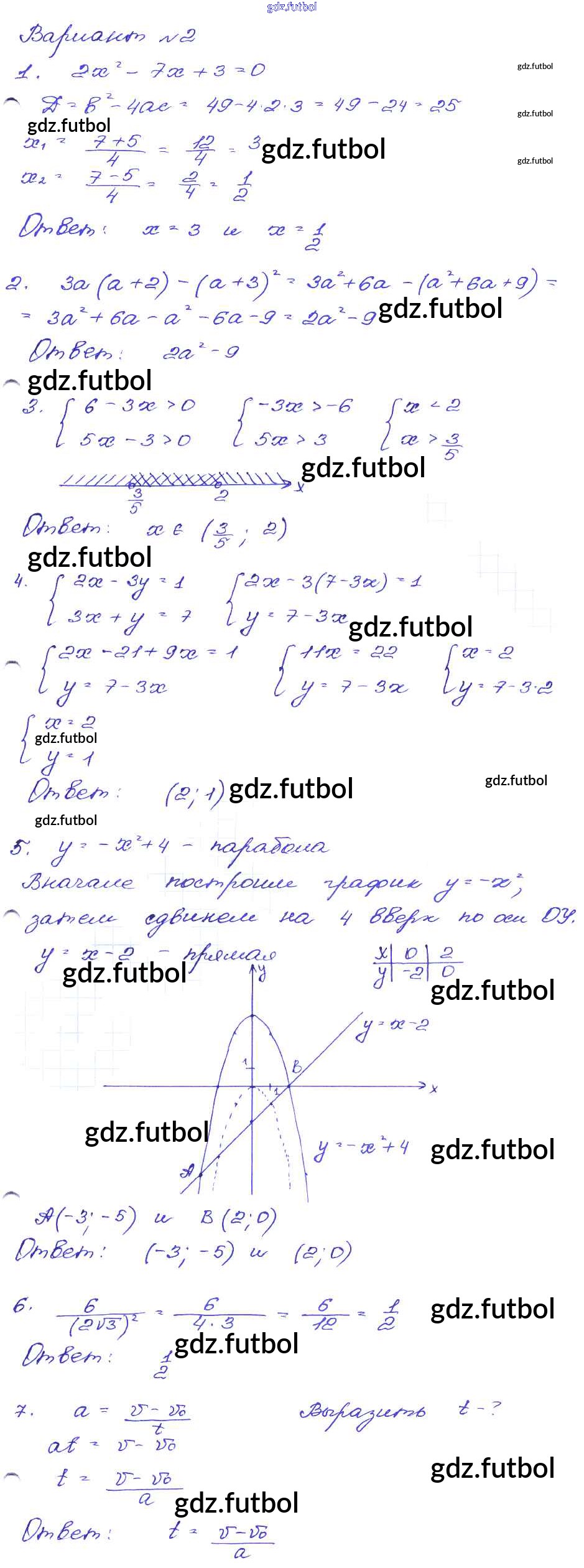 Готовые домашние задания по Алгебре за 9 класс Кузнецова Сборник заданий 2008 ФГОС - Работа 2 Вариант-2