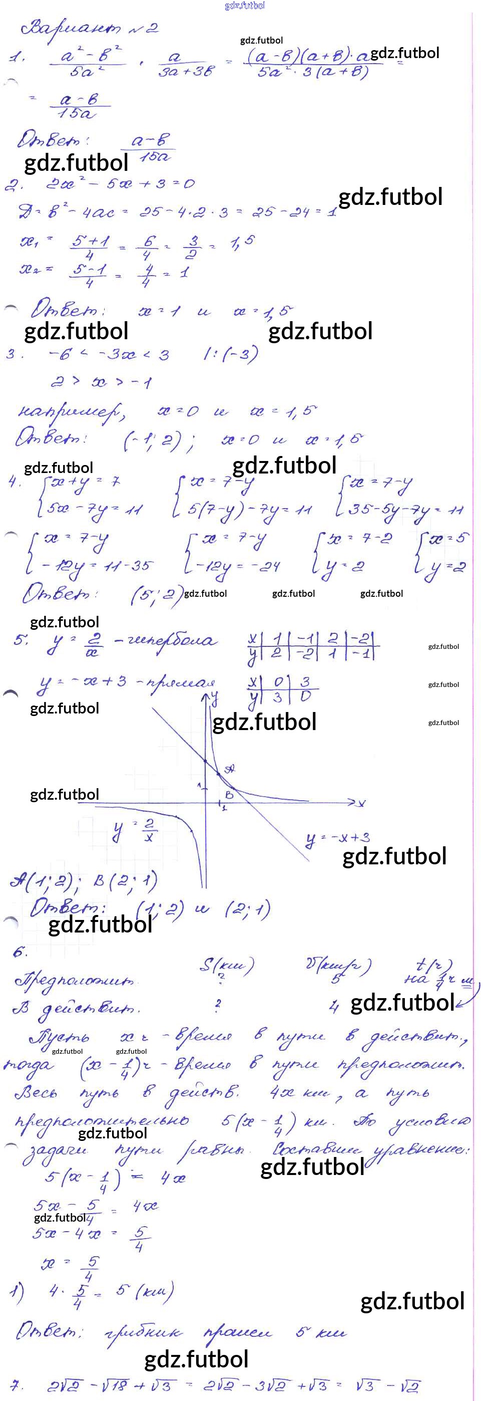Готовые домашние задания по Алгебре за 9 класс Кузнецова Сборник заданий 2008 ФГОС - Работа 5 Вариант-2