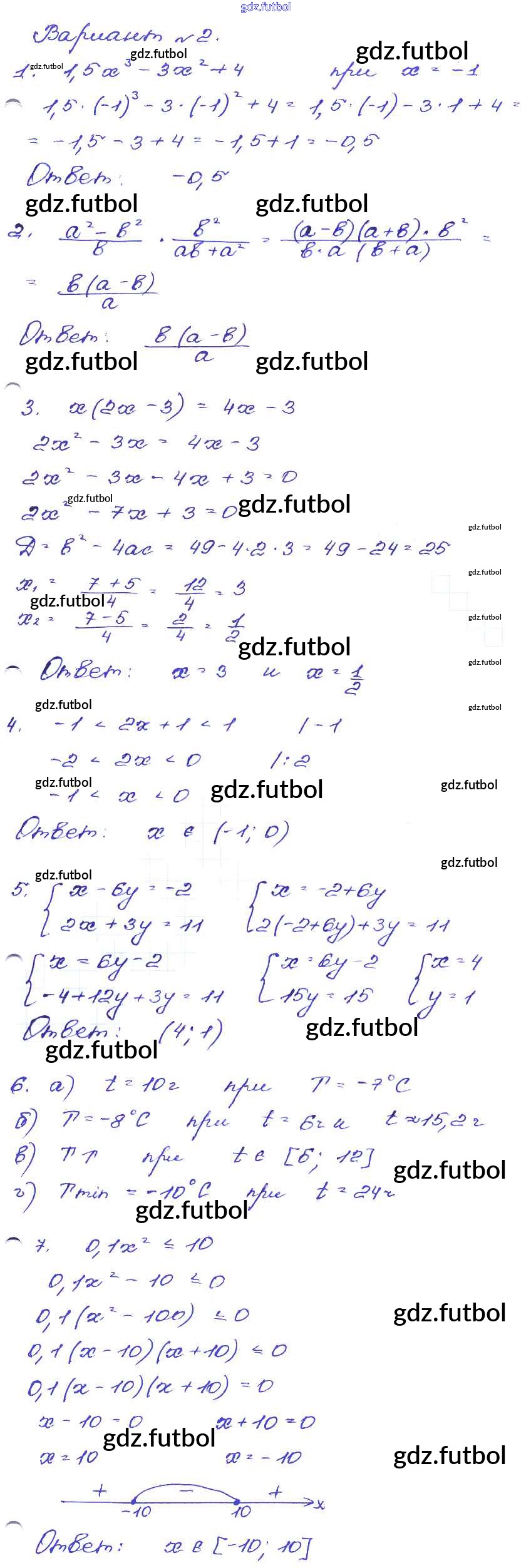 Готовые домашние задания по Алгебре за 9 класс Кузнецова Сборник заданий 2008 ФГОС - Работа 6 Вариант-2