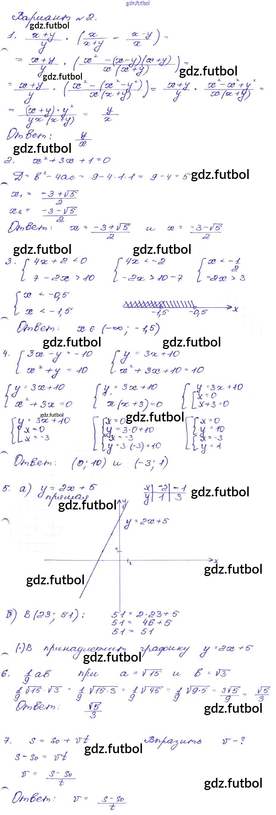 Готовые домашние задания по Алгебре за 9 класс Кузнецова Сборник заданий 2008 ФГОС - Работа 7 Вариант-2
