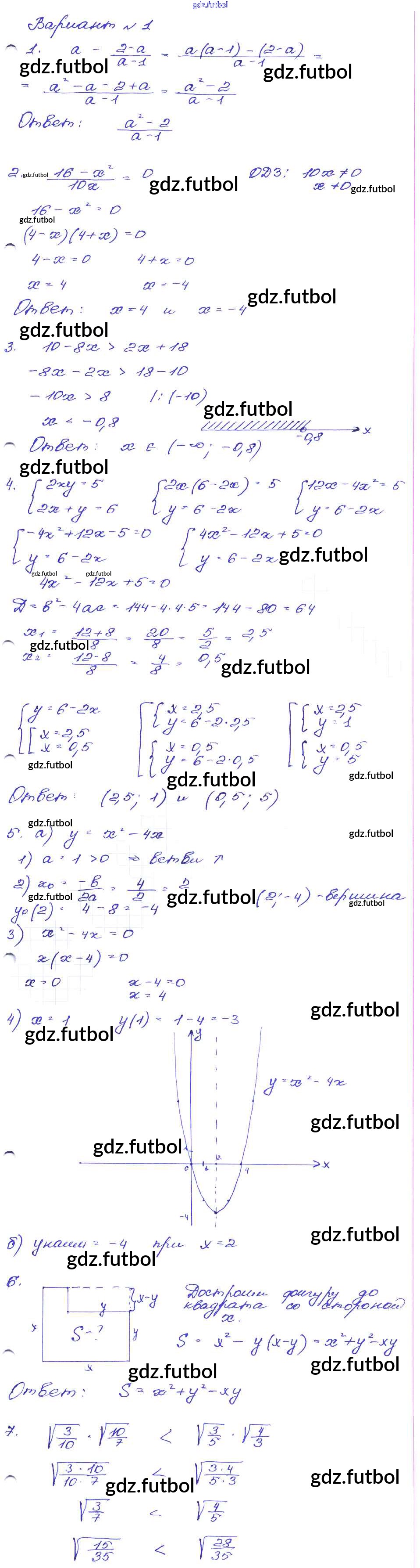 Готовые домашние задания по Алгебре за 9 класс Кузнецова Сборник заданий 2008 ФГОС - Работа 8 Вариант-1