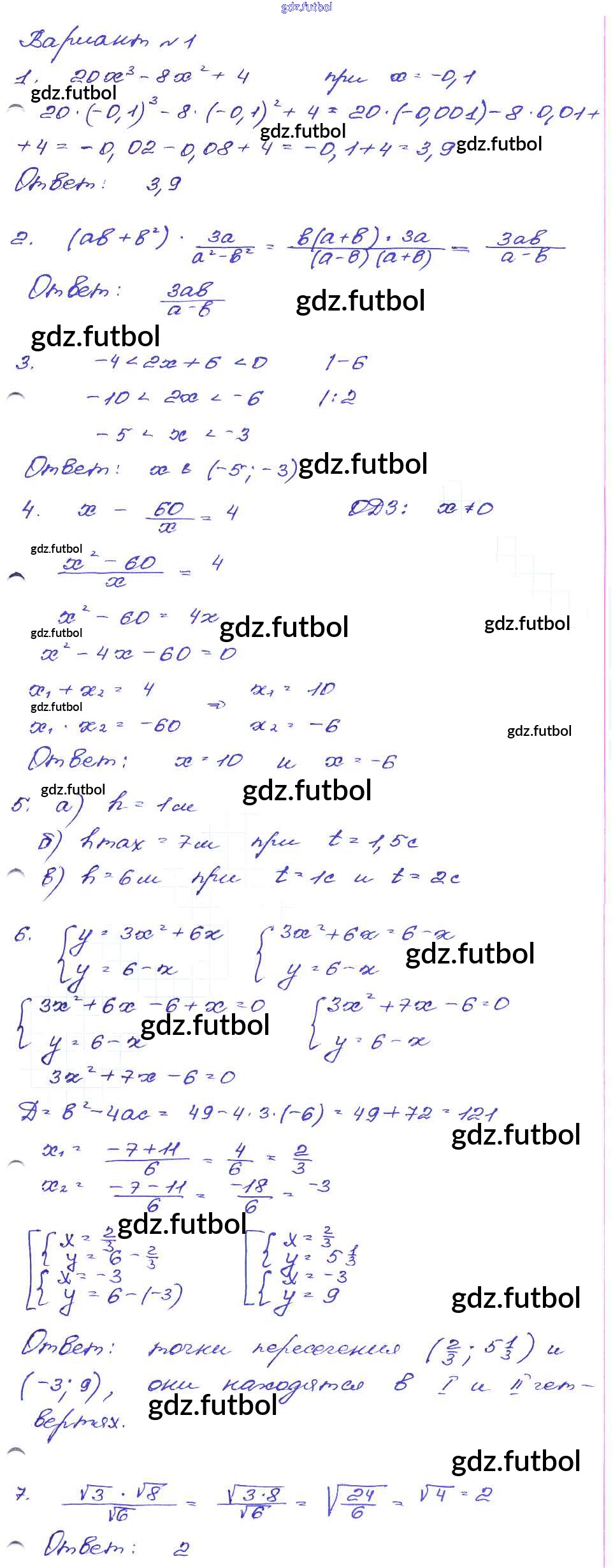 Готовые домашние задания по Алгебре за 9 класс Кузнецова Сборник заданий 2008 ФГОС - Работа 12 Вариант-1