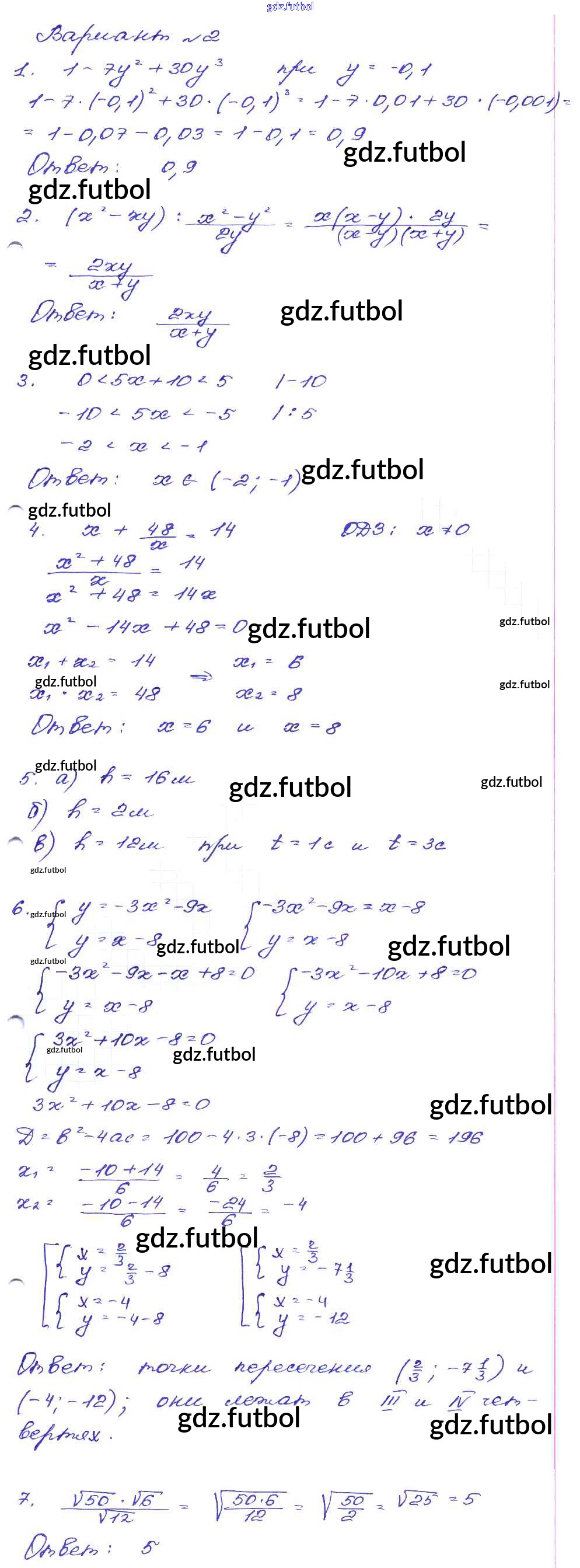 Готовые домашние задания по Алгебре за 9 класс Кузнецова Сборник заданий 2008 ФГОС - Работа 12 Вариант-2