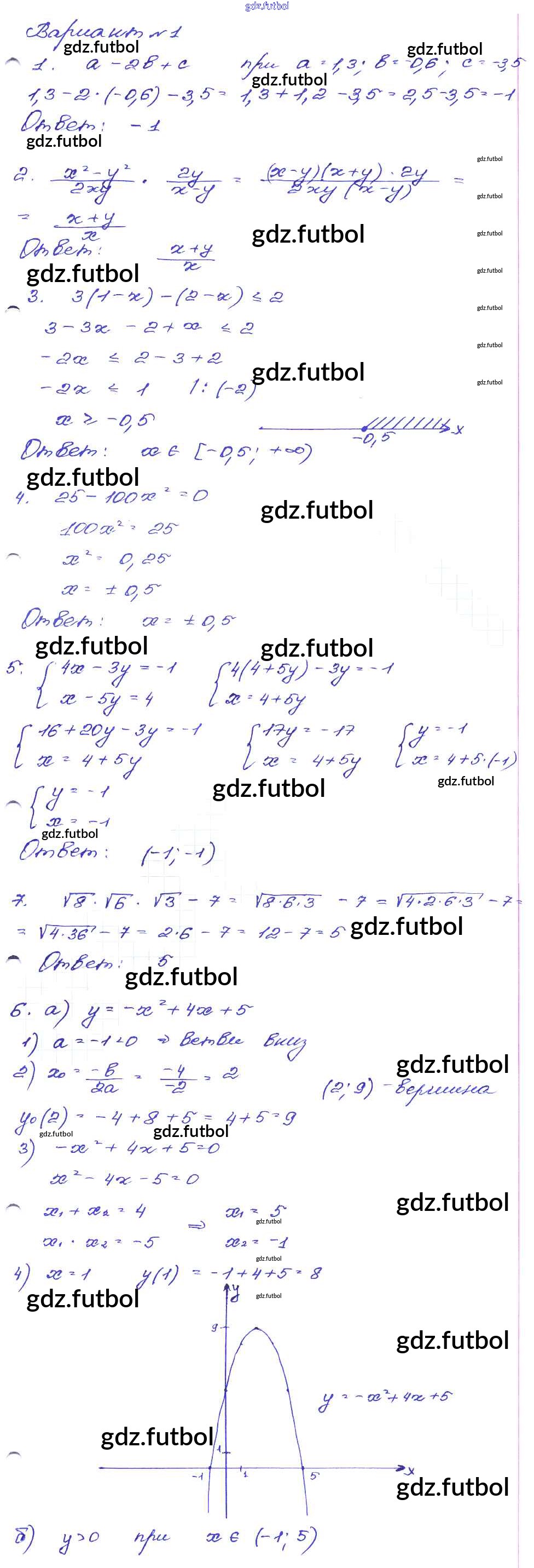 Готовые домашние задания по Алгебре за 9 класс Кузнецова Сборник заданий 2008 ФГОС - Работа 13 Вариант-1
