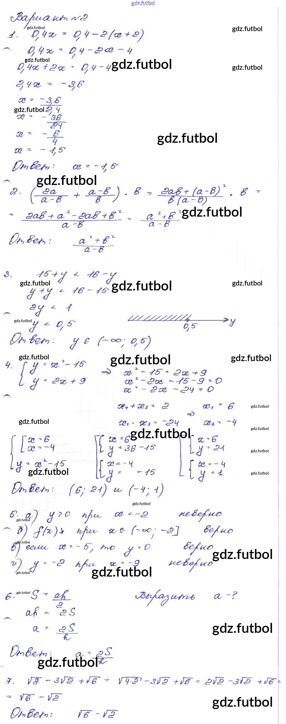 Готовые домашние задания по Алгебре за 9 класс Кузнецова Сборник заданий 2008 ФГОС - Работа 17 Вариант-2