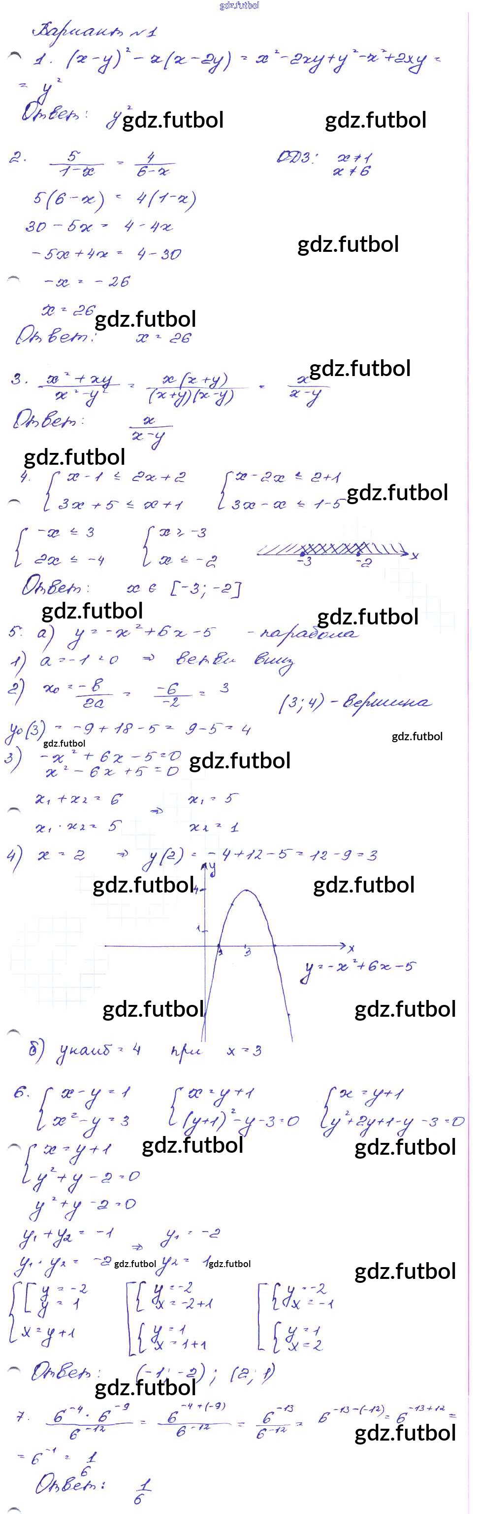 Готовые домашние задания по Алгебре за 9 класс Кузнецова Сборник заданий 2008 ФГОС - Работа 29 Вариант-1
