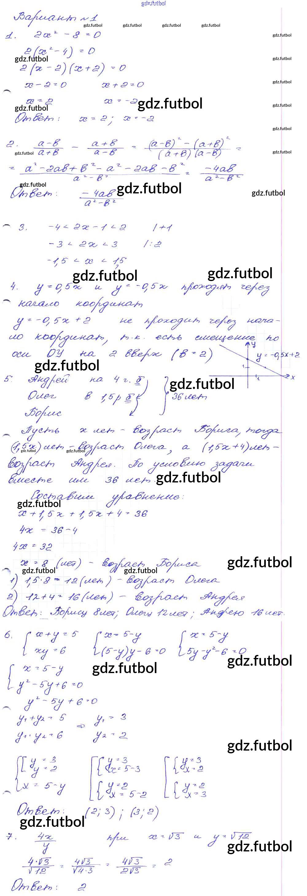 Готовые домашние задания по Алгебре за 9 класс Кузнецова Сборник заданий 2008 ФГОС - Работа 31 Вариант-1