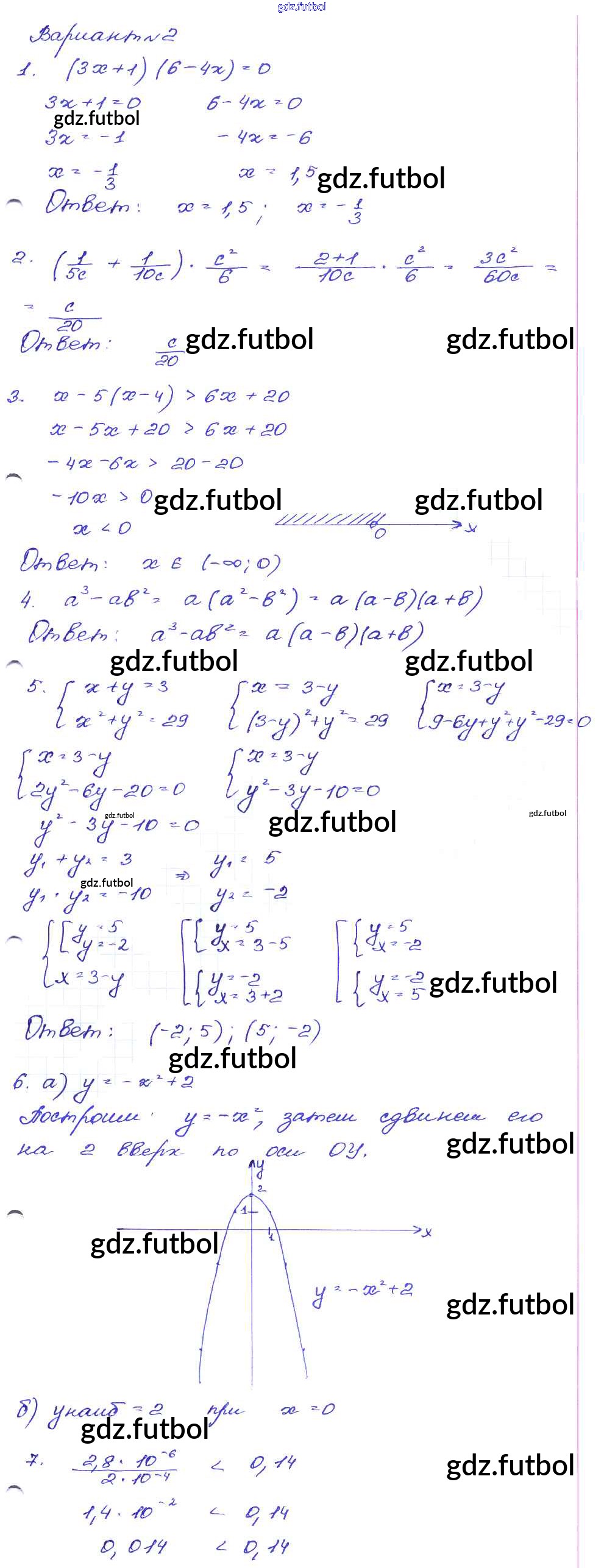 Готовые домашние задания по Алгебре за 9 класс Кузнецова Сборник заданий 2008 ФГОС - Работа 34 Вариант-2