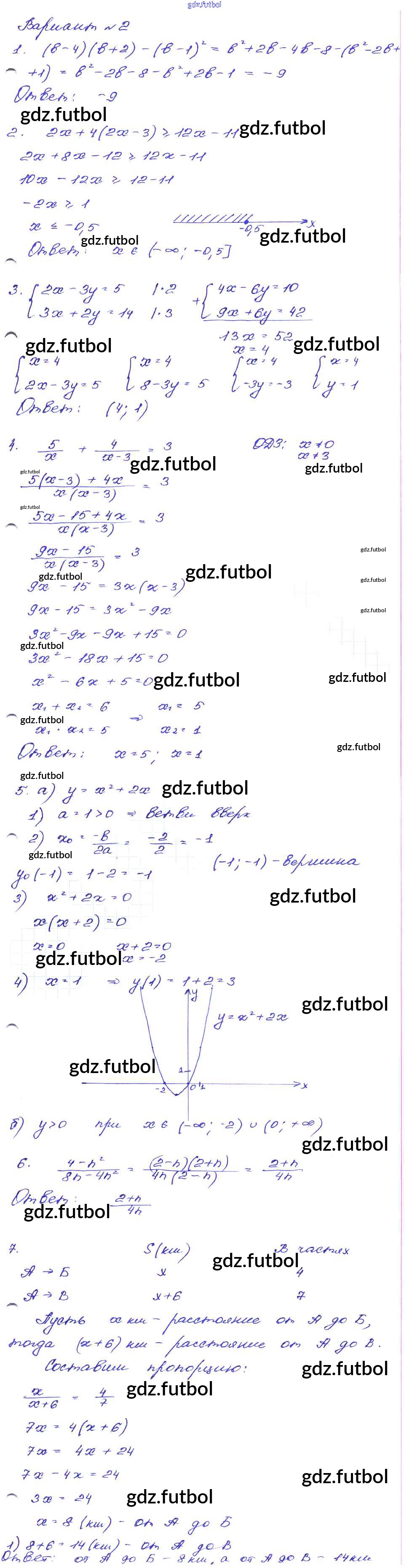 Готовые домашние задания по Алгебре за 9 класс Кузнецова Сборник заданий 2008 ФГОС - Работа 35 Вариант-2
