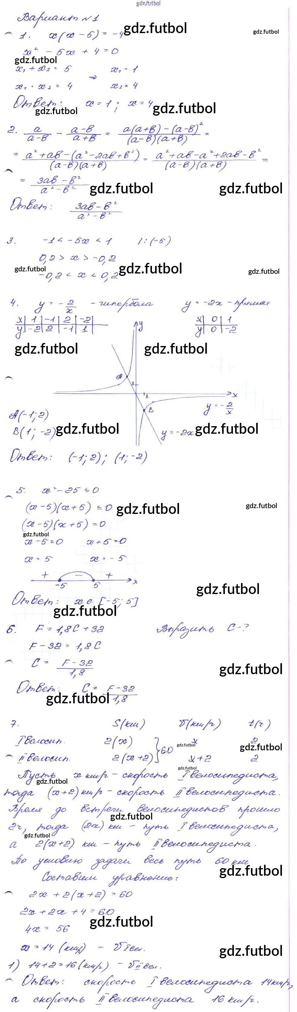 Готовые домашние задания по Алгебре за 9 класс Кузнецова Сборник заданий 2008 ФГОС - Работа 38 Вариант-1