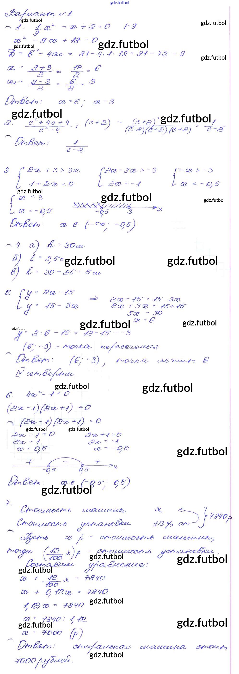 Готовые домашние задания по Алгебре за 9 класс Кузнецова Сборник заданий 2008 ФГОС - Работа 42 Вариант-1