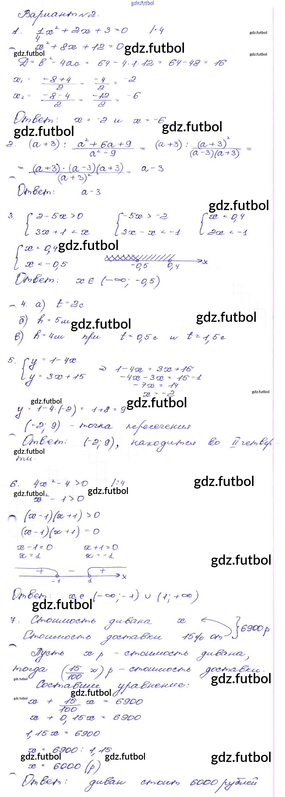 Готовые домашние задания по Алгебре за 9 класс Кузнецова Сборник заданий 2008 ФГОС - Работа 42 Вариант-2