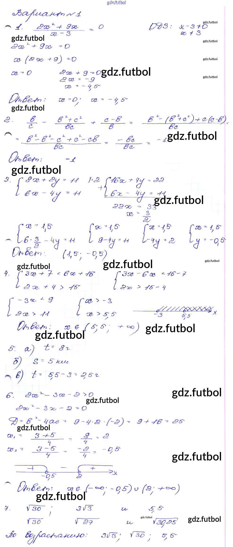 Готовые домашние задания по Алгебре за 9 класс Кузнецова Сборник заданий 2008 ФГОС - Работа 43 Вариант-1