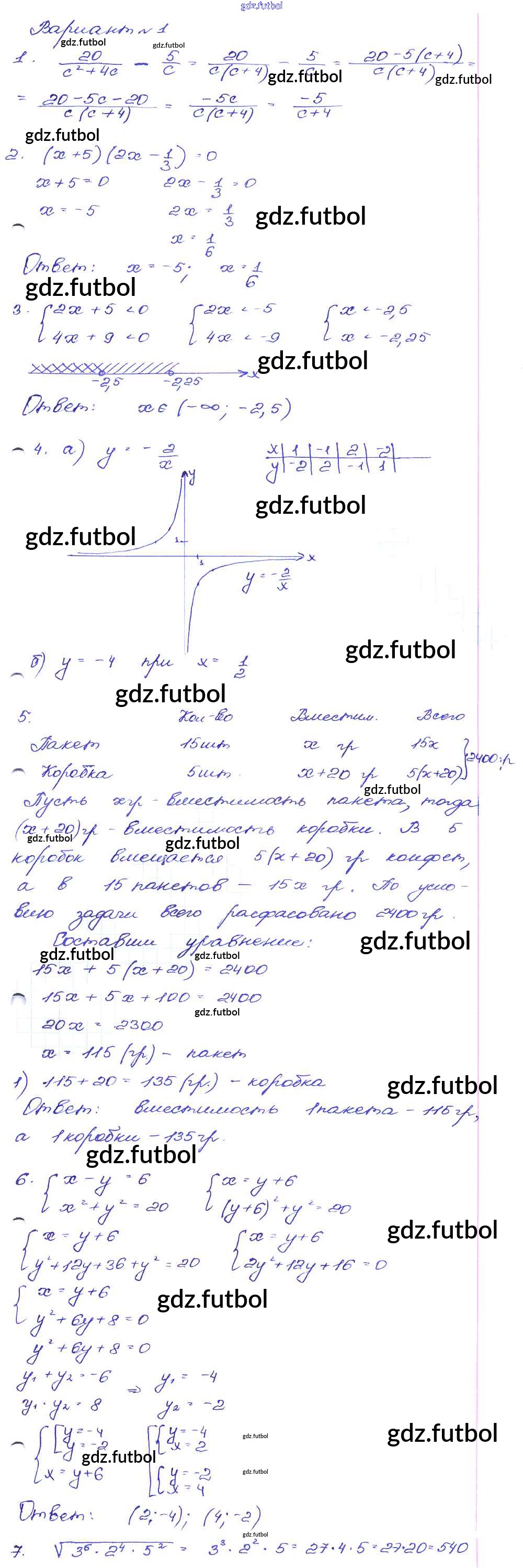 Готовые домашние задания по Алгебре за 9 класс Кузнецова Сборник заданий 2008 ФГОС - Работа 51 Вариант-1
