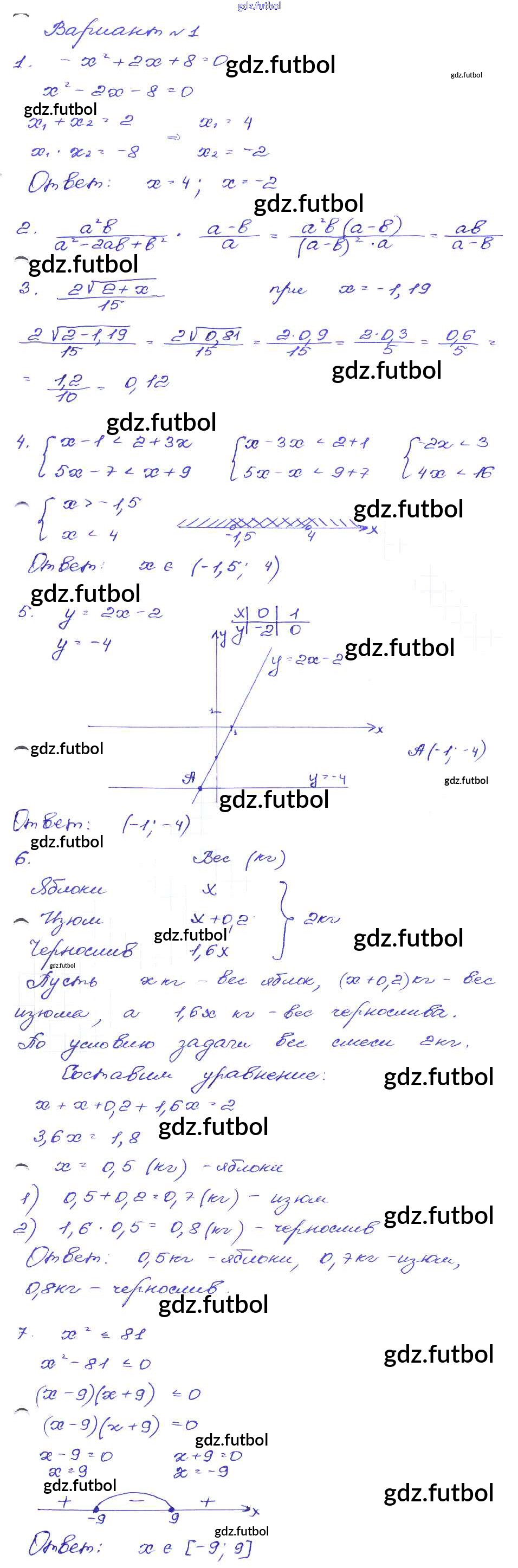 Готовые домашние задания по Алгебре за 9 класс Кузнецова Сборник заданий 2008 ФГОС - Работа 52 Вариант-1