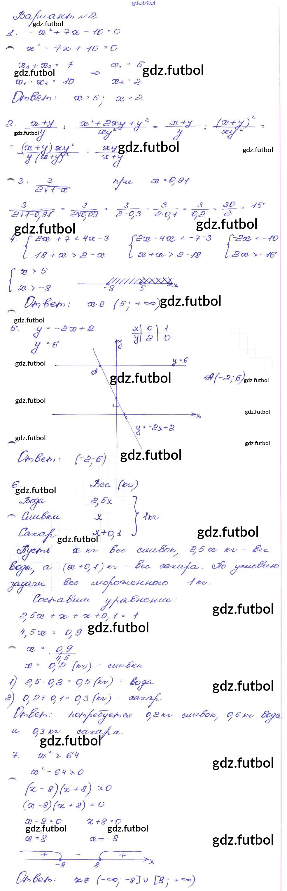 Готовые домашние задания по Алгебре за 9 класс Кузнецова Сборник заданий 2008 ФГОС - Работа 52 Вариант-2