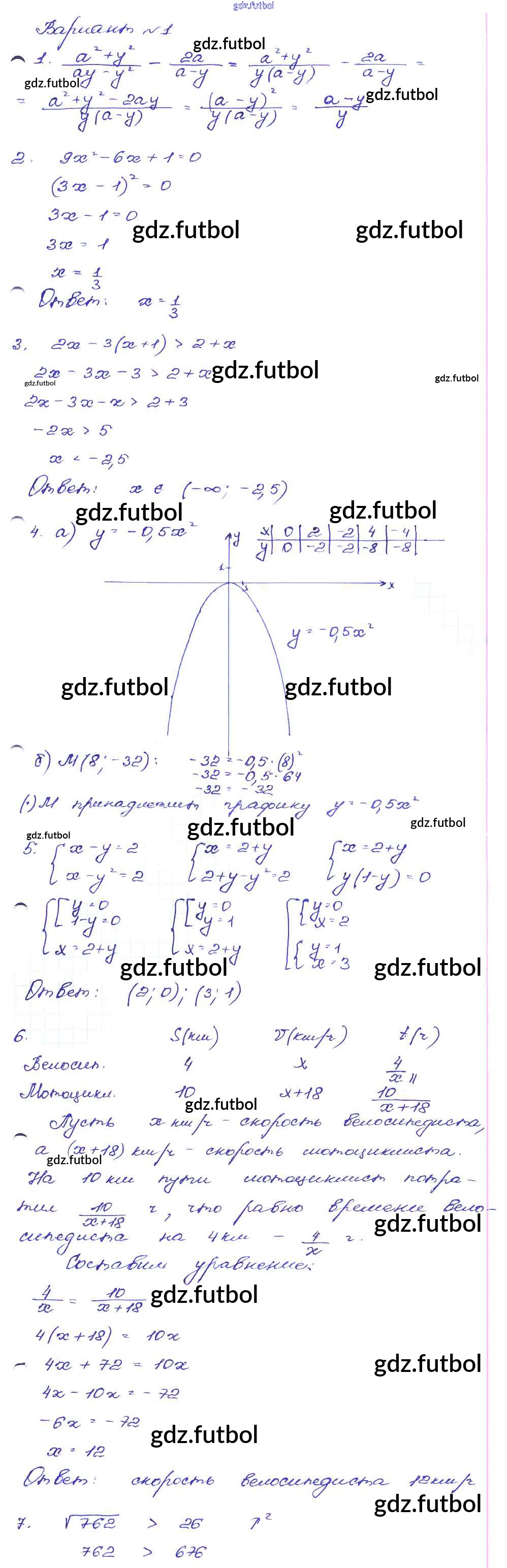 Готовые домашние задания по Алгебре за 9 класс Кузнецова Сборник заданий 2008 ФГОС - Работа 53 Вариант-1