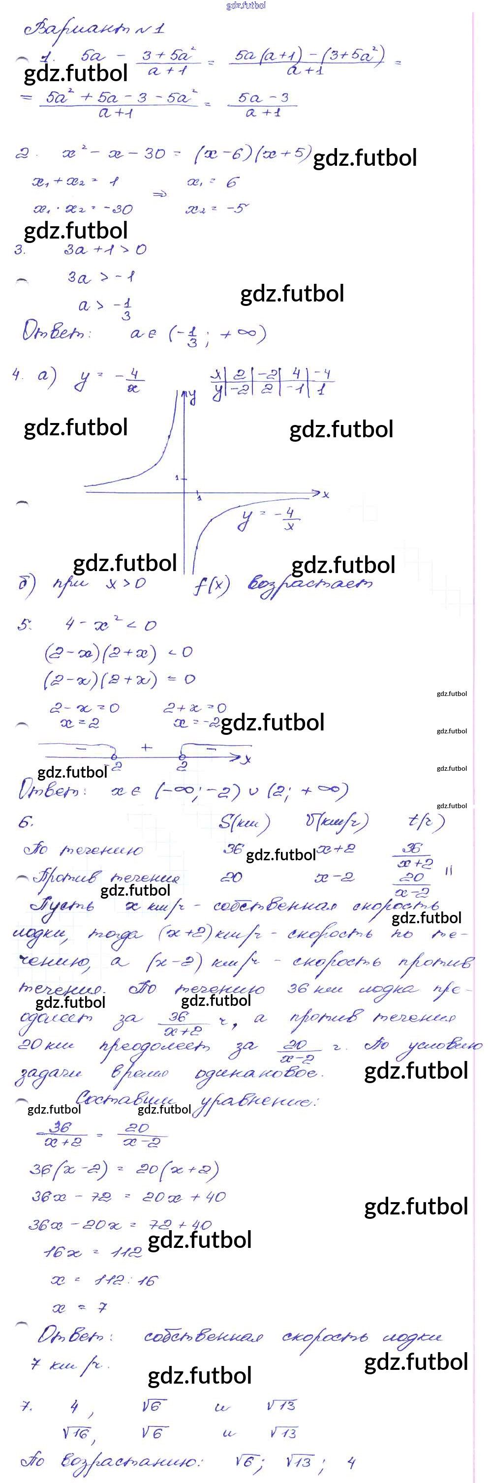 Готовые домашние задания по Алгебре за 9 класс Кузнецова Сборник заданий 2008 ФГОС - Работа 54 Вариант-1