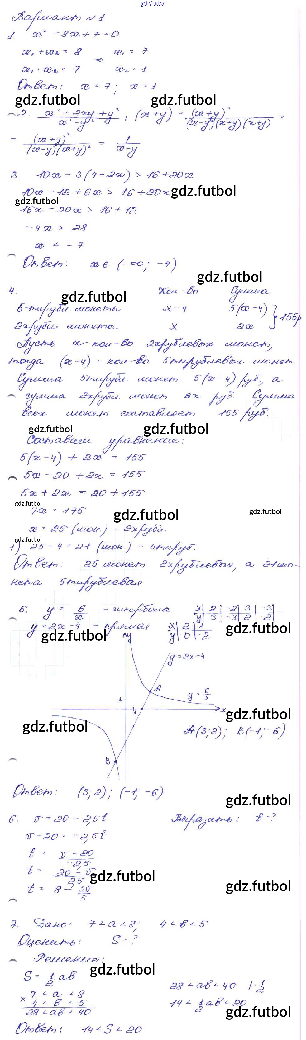 Готовые домашние задания по Алгебре за 9 класс Кузнецова Сборник заданий 2008 ФГОС - Работа 55 Вариант-1