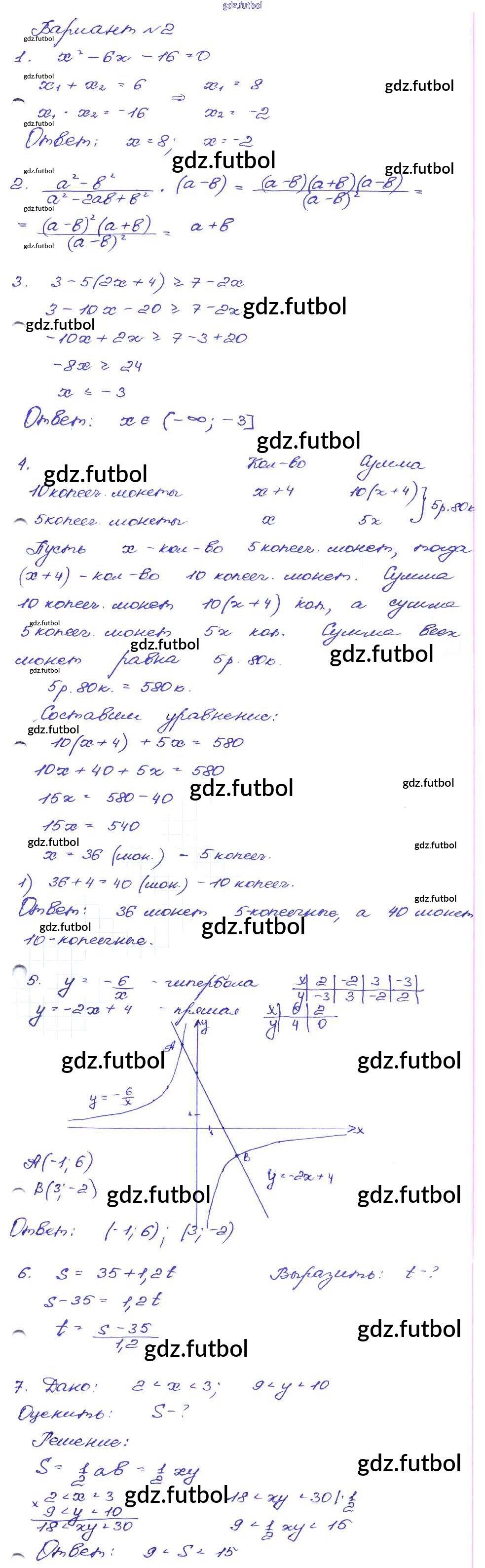 Готовые домашние задания по Алгебре за 9 класс Кузнецова Сборник заданий 2008 ФГОС - Работа 55 Вариант-2