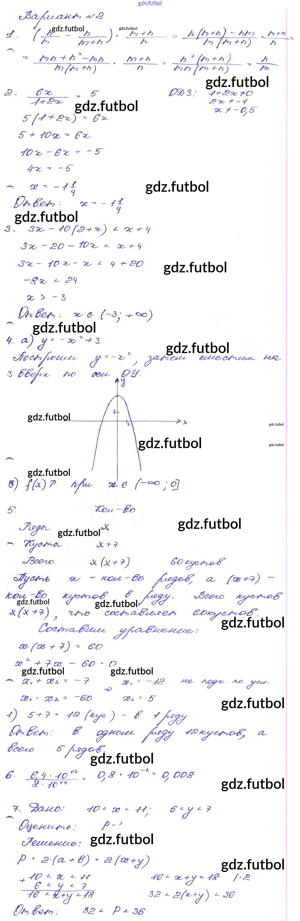 Готовые домашние задания по Алгебре за 9 класс Кузнецова Сборник заданий 2008 ФГОС - Работа 57 Вариант-2