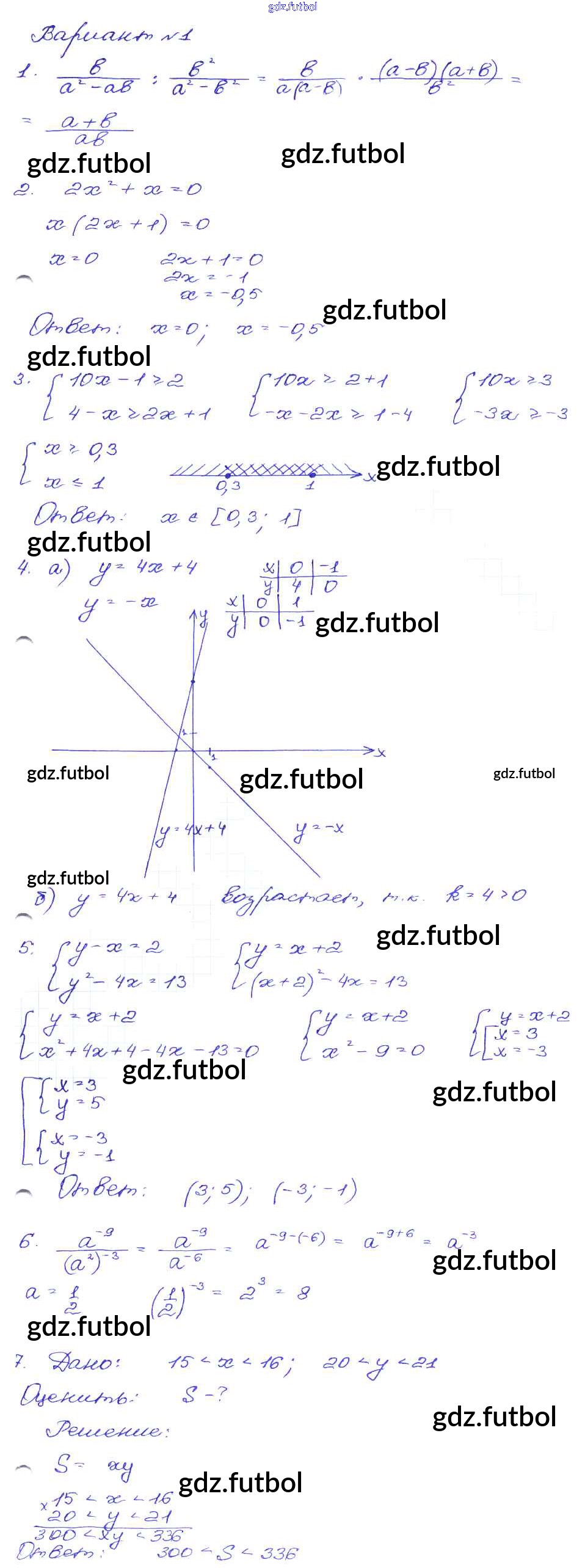 Готовые домашние задания по Алгебре за 9 класс Кузнецова Сборник заданий 2008 ФГОС - Работа 62 Вариант-1