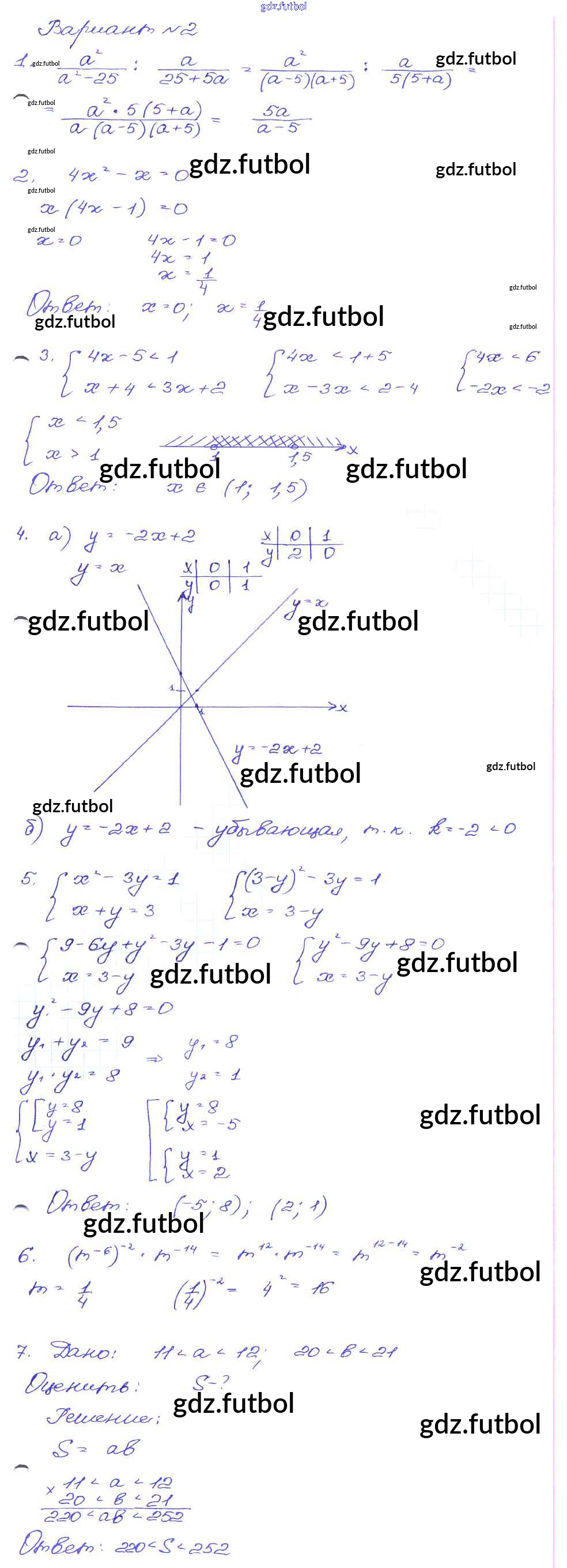 Готовые домашние задания по Алгебре за 9 класс Кузнецова Сборник заданий 2008 ФГОС - Работа 62 Вариант-2