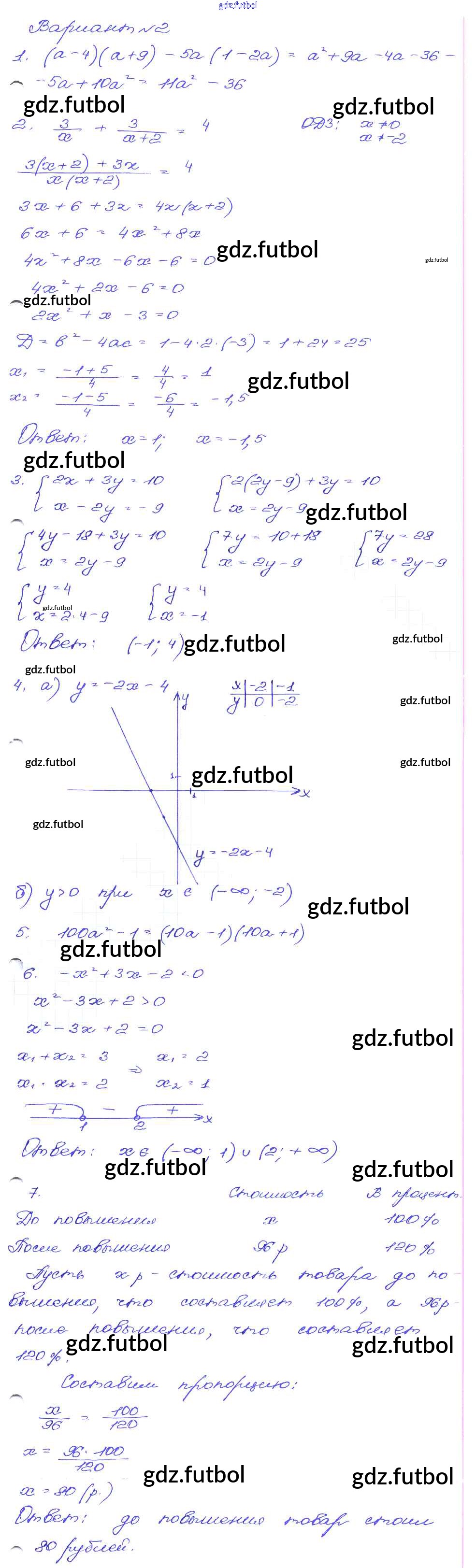 Готовые домашние задания по Алгебре за 9 класс Кузнецова Сборник заданий 2008 ФГОС - Работа 63 Вариант-2